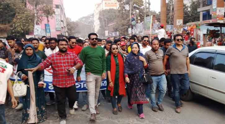 তারেক রহমানের আগমন উপলক্ষে ফরিদপুরে ছাত্রদলের স্বাগত মিছিল