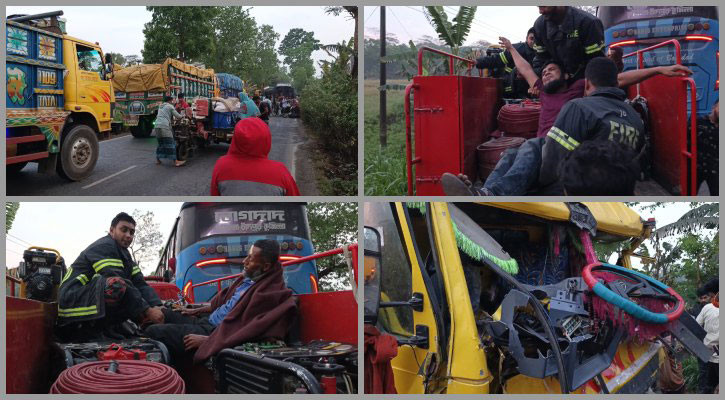 মাদারীপুরে বাস-ট্রাক সংঘর্ষে আহত ১৫, ২ ঘণ্টা যান চলাচল বন্ধ