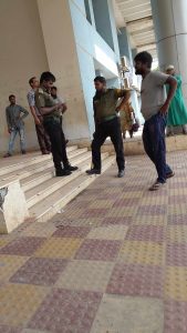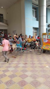 শেরেবাংলা মেডিকেল কলেজ হাসপাতালের সামনে কাজকর্ম ফালাইয়া আনসারা খুস গল্প করছেন
