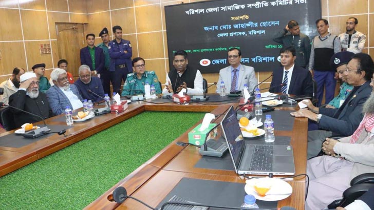বরিশাল জেলা সামাজিক সম্প্রীতি কমিটির সভা অনুষ্ঠিত হয়েছে। সভায় সামাজিক সম্প্রীতি বিনষ্টে গুজব ছড়ানো ব্যক্তিদের বিরুদ্ধে ব্যবস্থা নেওয়ার ঘোষণা দেওয়া